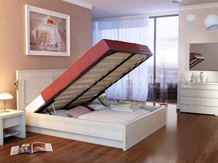 Кровать с подъемным механизмом делает удобным и доступным место для хранения.