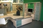 Стол руководителя выполнен с фронталью и представлен в двух размерах с разными вариантами опор. Опорой стола может служить тумба-приставка, которая обеспечит место для хранения документов и системного блока. Тумба-приставка может использоваться как слева, так и с права. Дополнительный отсек с полками с наружной стороны тумбы-приставки снабжён стеклянной дверцей, которая гармонирует со стеклянными дверями стеллажей и шкафов. Для дверей используется матовое закалённое стекло в алюминиевой раме. Брифинг-приставка — удобное дополнение к столу руководителя для приёма посетителей и организации совещаний. Массивные топы шкафов сочетаются со столешницей. Задняя стенка шкафов из ЛДСП 10мм, что придаёт жёсткость конструкции, увеличивая срок службы. Топ композиций со стеллажами оборудован светильниками, которыми придадут вашему кабинету дополнительную освещённость и создадут уютную атмосферу. Поставляется со склада. Всегда в наличии модульная программа этой серии, что позволяет комплектовать кабинет руководителей и персонала.