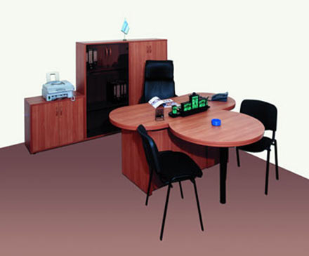 Комплект офисной мебели "АЛЬТЕРНА" представляет собой кабинет руководителя. Столы изготовлены из двухслойной ЛДСП (толщина 44 мм) на регулируемых опорах. Кромка ПВХ на всех торцах изделий. Шкафы из ЛДСП (толщина 22 мм) с кромкой ПВХ, на регулируемых опорах, задние стенки - ЛДСП (толщина 16 мм).